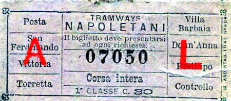 Italy Naples Tram Ticket 1890-2