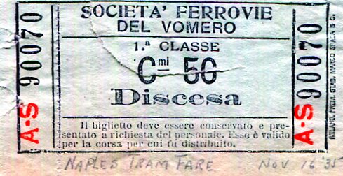 Italy Naples Tram Ticket 1935