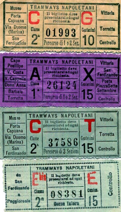 Italy Naples Tram Tickets 1909-2