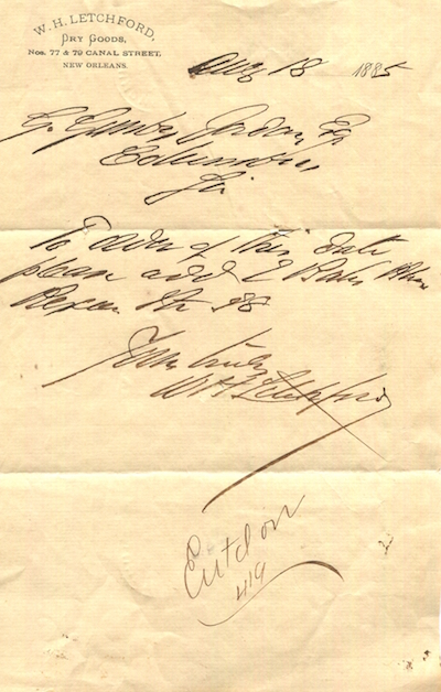USA Louisiana New Orleans Letter Commerce WH Letchford 1885