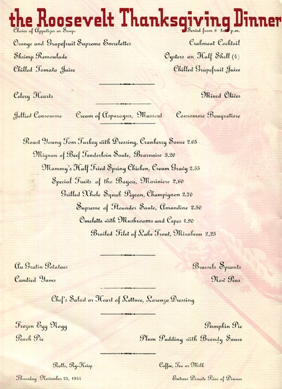 USA Louisiana New Orleans Menu Hotel Roosevelt Thanksgiving 1944 Front