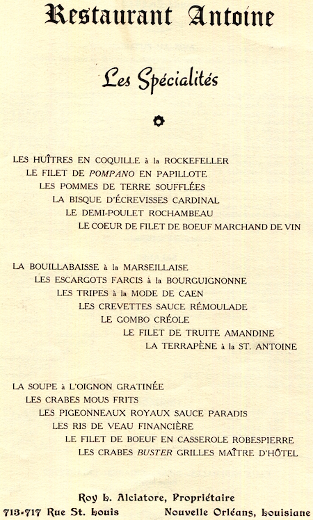 USA Louisiana New Orleans Menu Restaurant Antoines 1940 Back