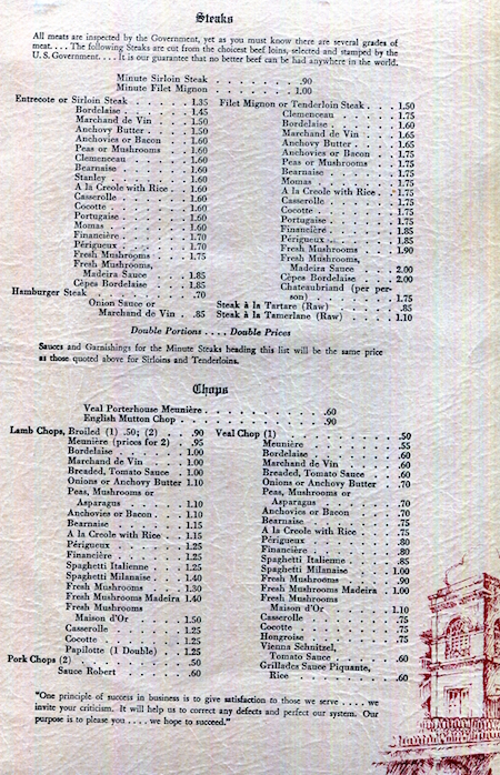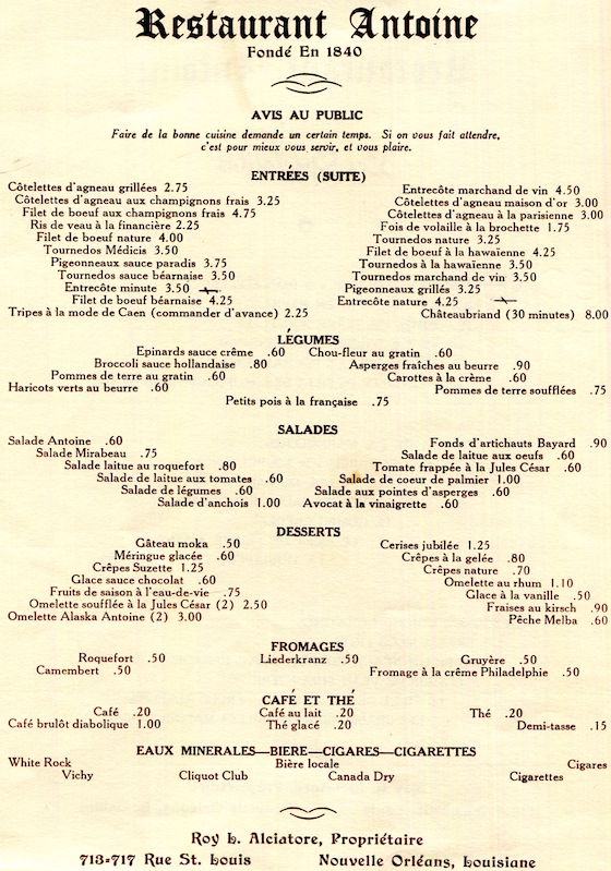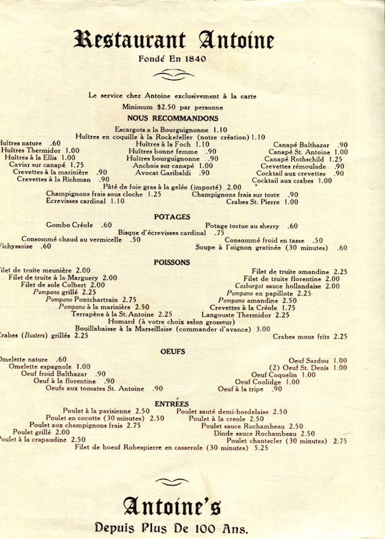 USA Louisiana New Orleans Menu Restaurant Antoines 1940 Inside 2