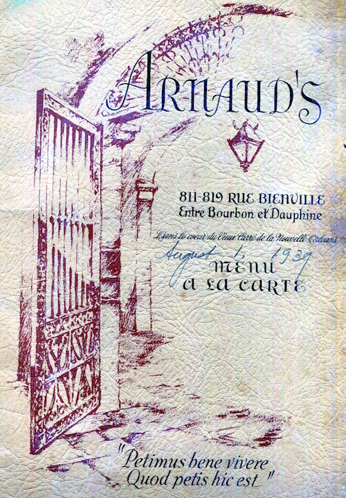 USA Louisiana New Orleans Menu Restaurant Arnauds 1939 Front