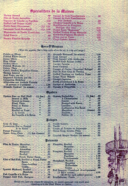 USA Louisiana New Orleans Menu Restaurant Arnauds 1939 Inside 2