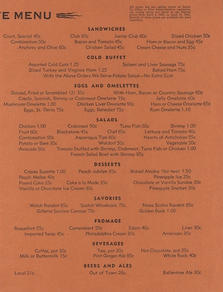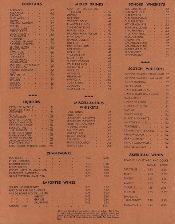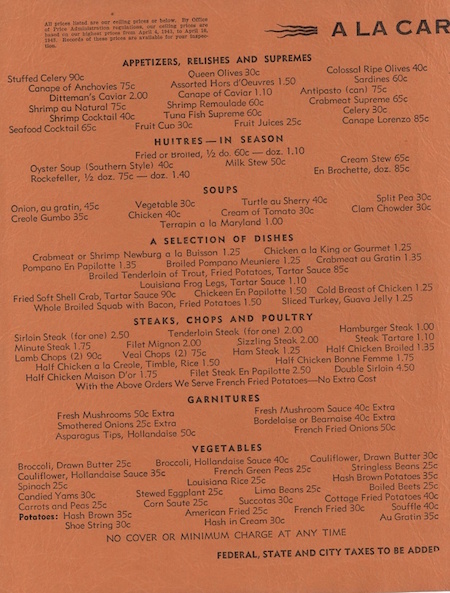 USA Louisiana New Orleans Menu Restaurant Court Of The Two Sisters 1944 Inside 1