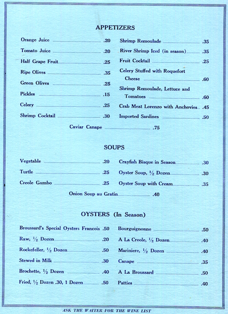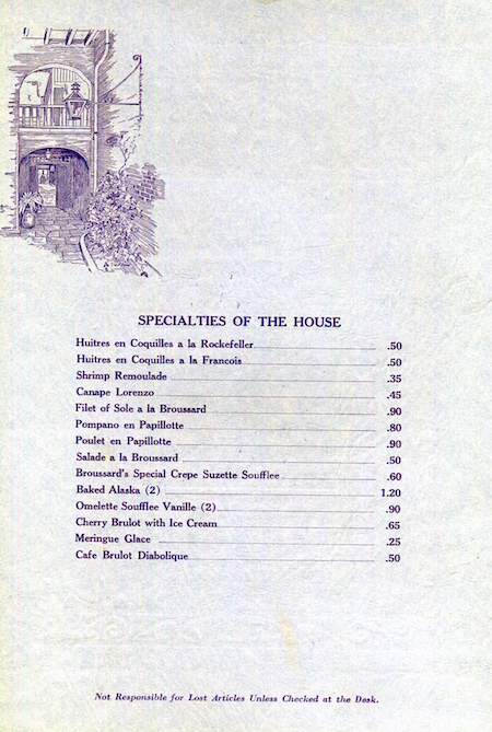 USA Louisiana New Orleans Restaurant Broussards Menu 1940 Front