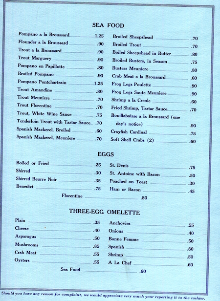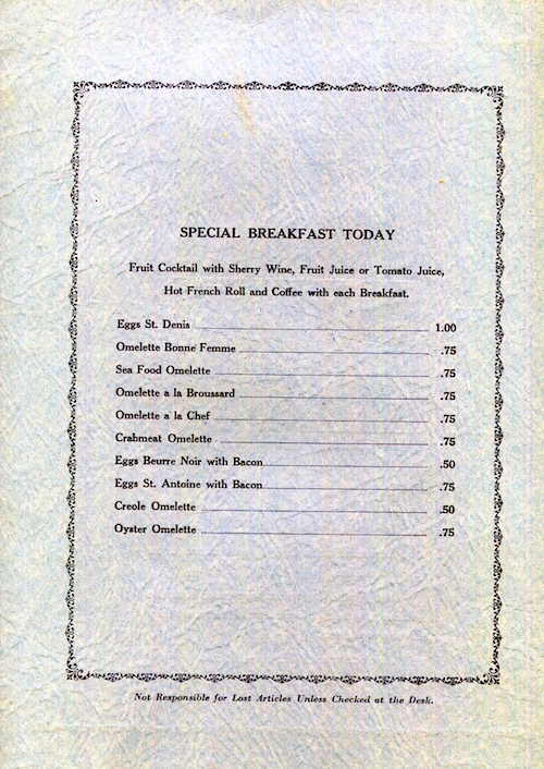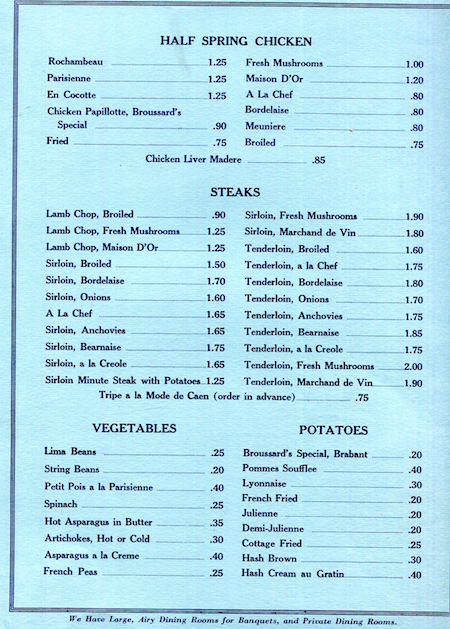 USA Louisiana New Orleans Restaurant Broussards Menu 1940 Inside 3