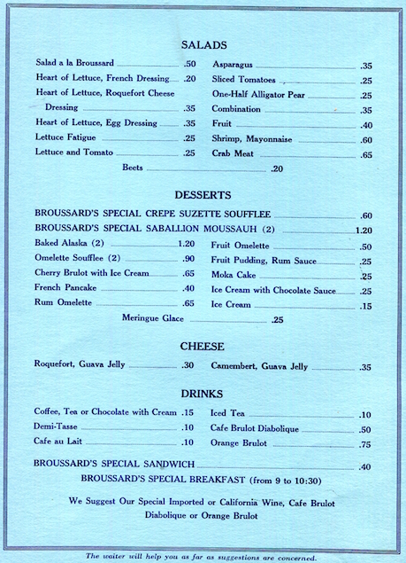 USA Louisiana New Orleans Restaurant Broussards Menu 1940 Inside 4
