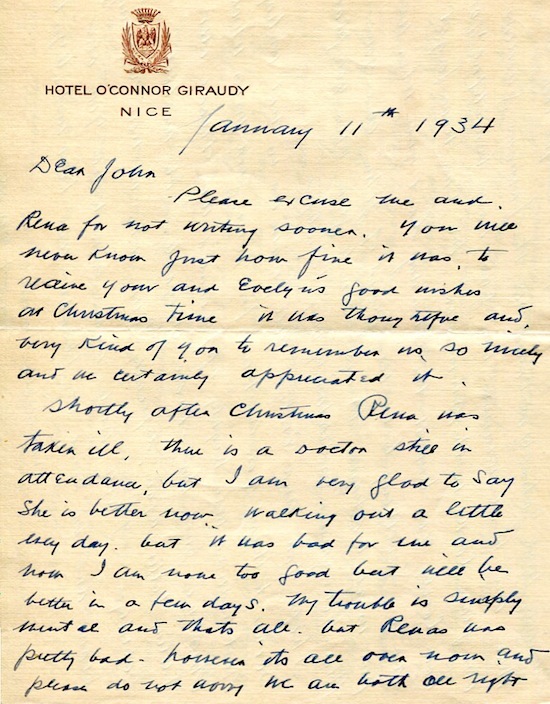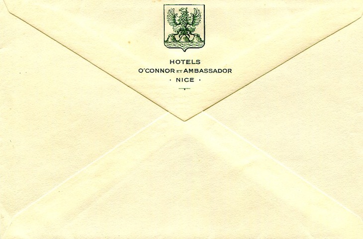 France Nice Hotel Stationery Grand Hotel O'Connor 1934