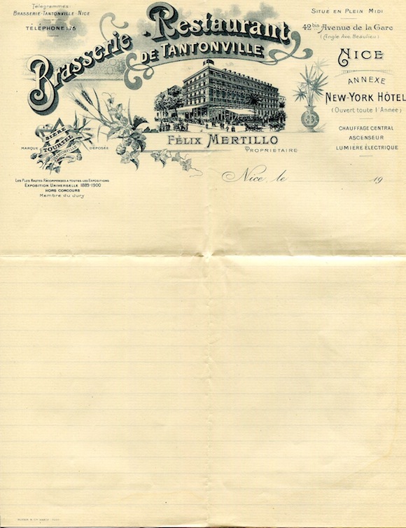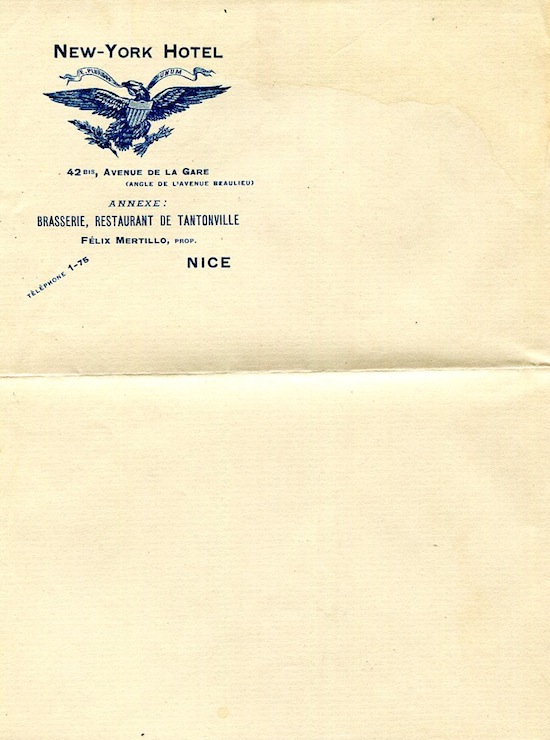 France Nice Hotel Stationery New-York Hotel 1900