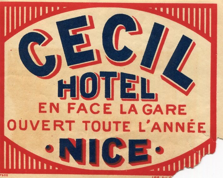 France Nice Luggage Label Cecil Hotel 1931