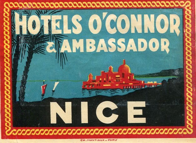 France Nice Luggage Label Grand Hotel O'Connor & Ambassador 1935