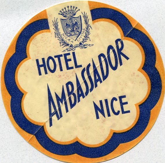 France Nice Luggage Label Hotel Ambassador 1935