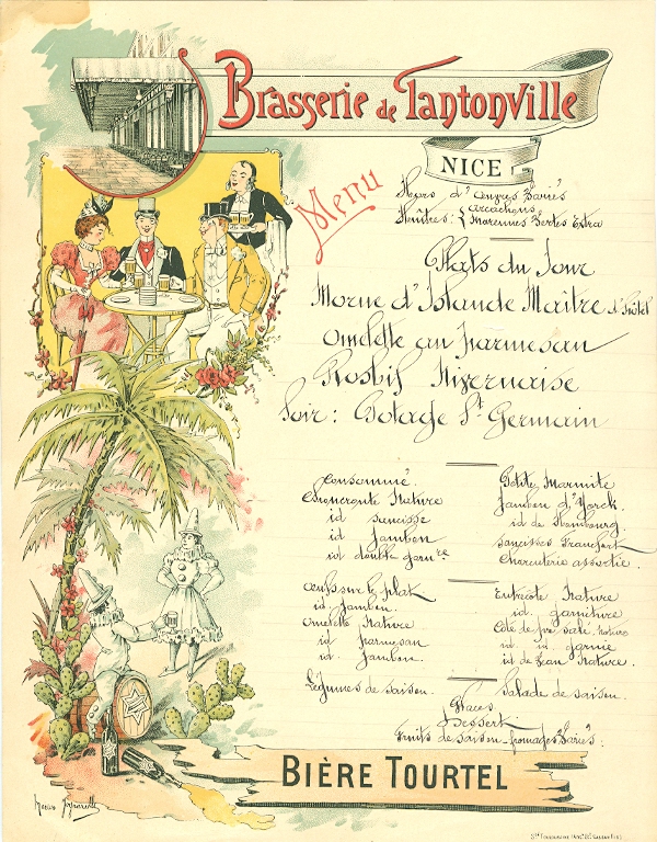 France Nice Menu Brasserie Tantonville 1899