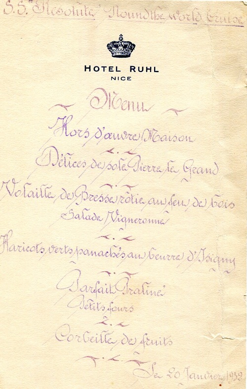France Nice Menu Hotel Ruhl 1932