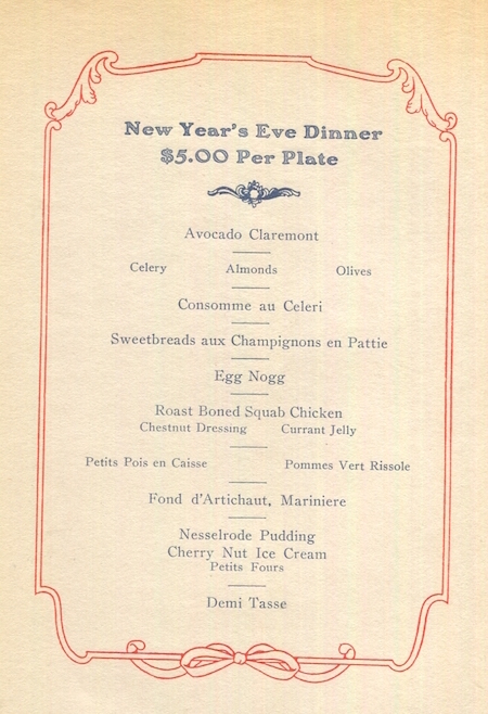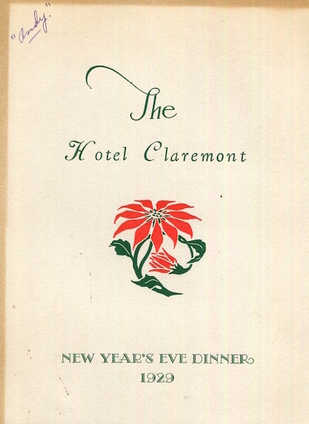 USA California Oakland Hotel Claremont Menu New Years Eve 1929 Front