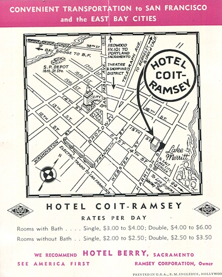 USA California Oakland Hotel Coit Ramsey Brochure 1938 Back