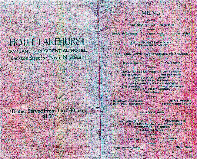 USA California Oakland Hotel Lake Merritt Menu 1931 Inside