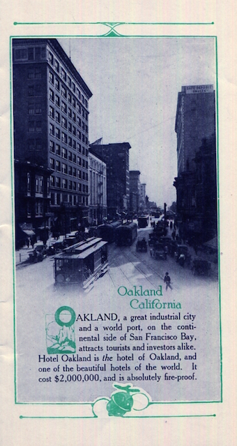 USA California Oakland Hotel Oakland Brochure 1910 Front