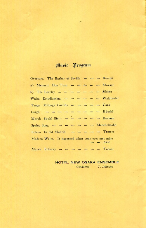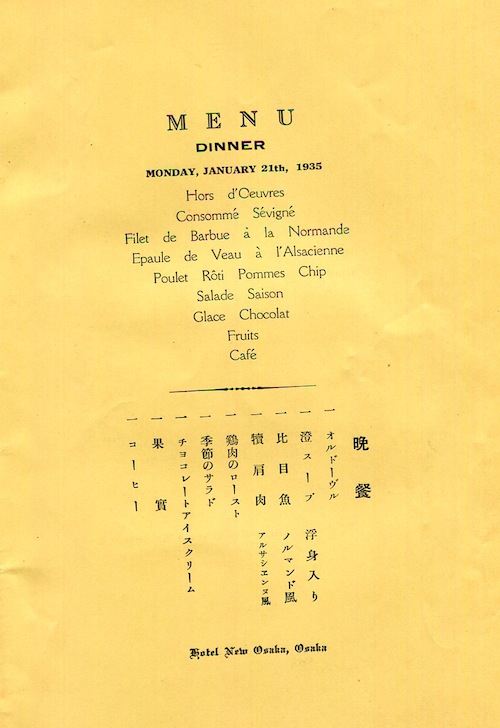 Japan Osaka Hotel New Osaka Menu 1935 Inside 1