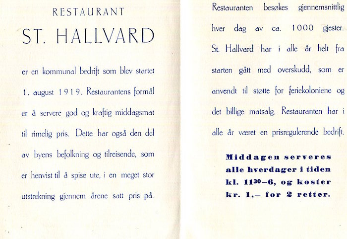 Norway Oslo Restaurant St Hallvard Brochure 1938 Inside