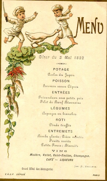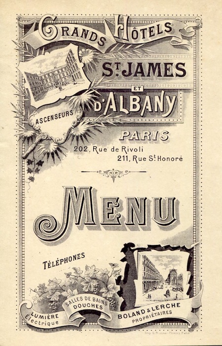 France Paris Menu Grand Hotel St James 1900
