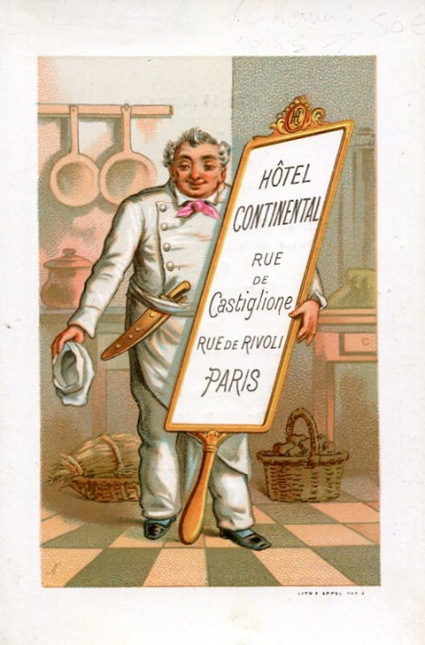 France Paris Menu Hotel Continental 1896