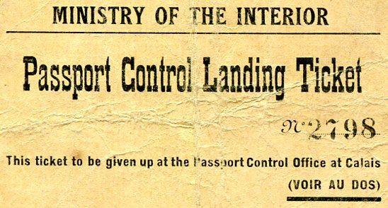 France Paris Passport Control Ticket 1924