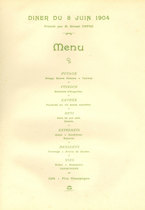 France Paris Special Occasion Menu 1904 Front