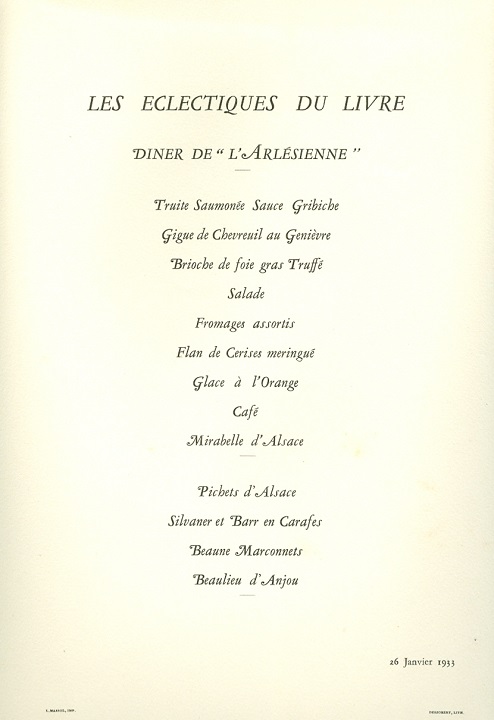 France Paris Special Occasion Menu 1933 Front