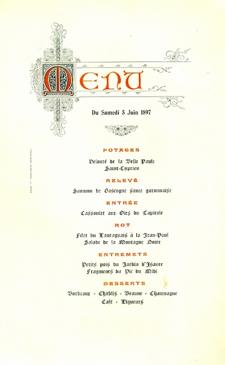 France Paris Special Menu Occasion Artistes Toulousaine 1897 Front