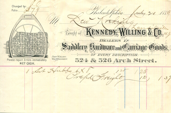 USA Pennsylvania Philadelphia Receipt Commerce Kennedy Willing Co Saddlery 1889
