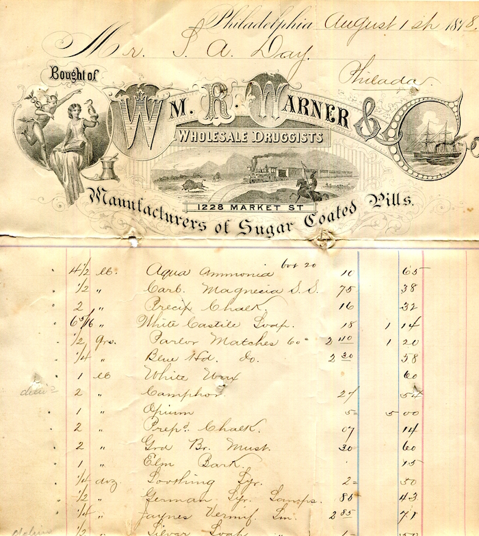 USA Pennsylvania Philadelphia Receipt Commerce WMR Warner Wholesale Druggists 1878