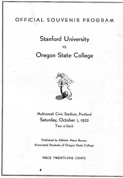 USA Oregon Portland Brochure Football Stanford University Vs Oregon State College 1932 Front