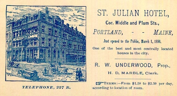 USA Maine Portland Business Card Hotel St Julian 1876