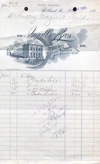 USA Maine Portland Receipt Commerce Ingalls Bros Importers 1896