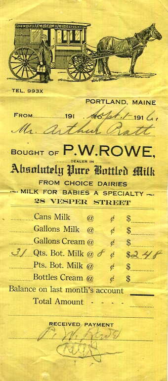 USA Maine Portland Receipt Commerce P W Rowe Milk Delivery 1926