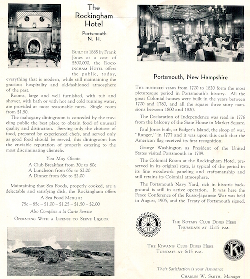 USA New Hampshire Portsmouth Brochure Hotel Rockingham 1933 Inside