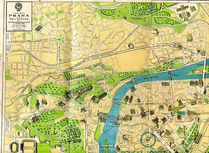 Czechoslovakia Prague Map 1938 Inside