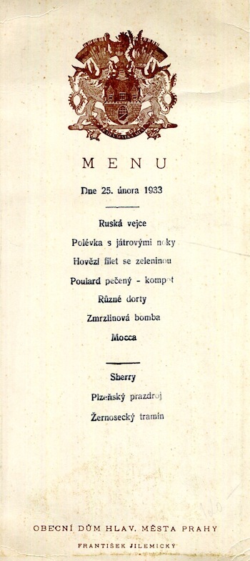 Czechoslovakia Prague Restaurant Obecní Dům Hlav Menu 1933