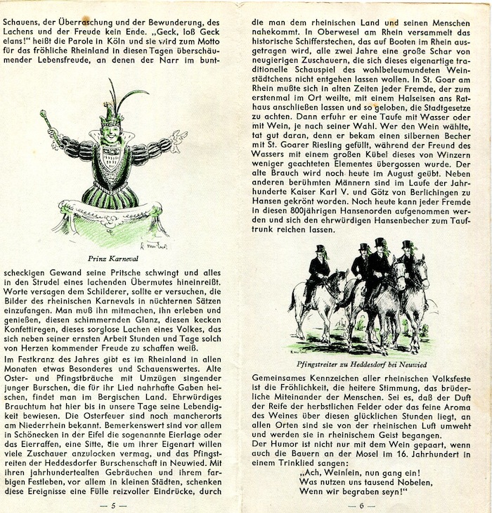 Germany Rhineland Map Tourism Entertainment 1937 Back