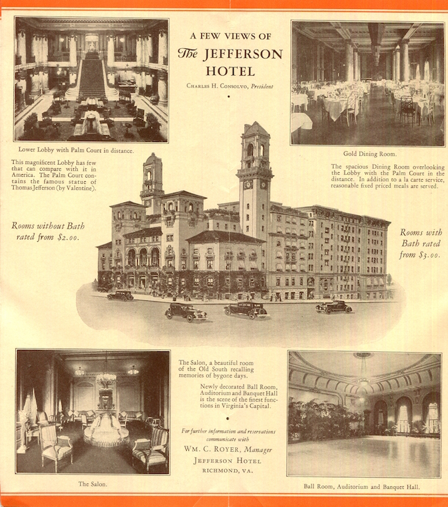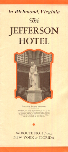 USA Virginia Richmond Brochure Hotel Jefferson 1928 Front