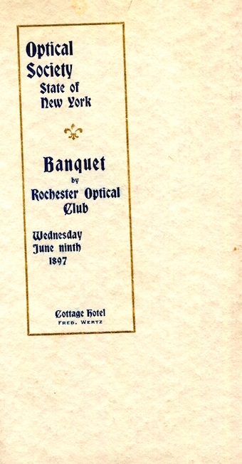 USA New York Rochester Menu Hotel Cottage 1897 Front