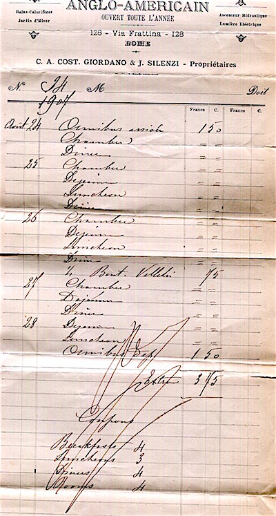 Italy Rome Hotel Anglo American Receipt 1907