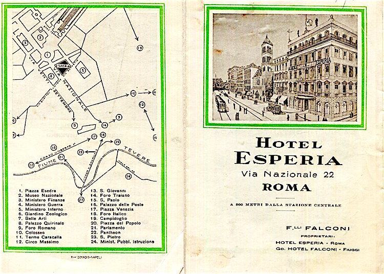 Italy Rome Hotel Ludovisi Map 1930