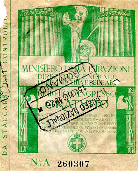 Italy Rome National Museum Ticket 1928