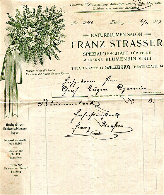 Austria Salzburg Commerce Franz Strasser Receipt Florist 1907