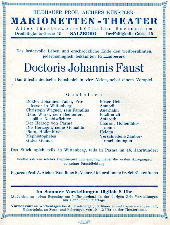 Austria Salzburg Entertainment Marionetten Theater Leaflet 1930