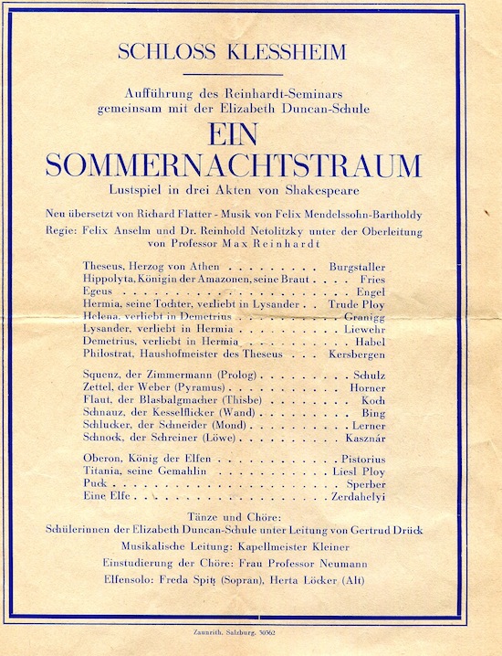 Austria Salzburg Entertainment Opera Schloss Klessheim Program A Summers Night Dream 1932